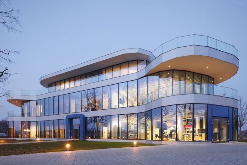 Beim Bauvorhaben MedXpert wurde eine zweigeschossige segmentierte Fassade ausgeführt, bei welcher das zurückgesetzte Dachgeschoss durch eine gerundete Treppenhausfassade erschlossen wurde. Auch die Glasgeländer zum Abschluss der Terrassen folgen dem segmentierten Fassadenverlauf.