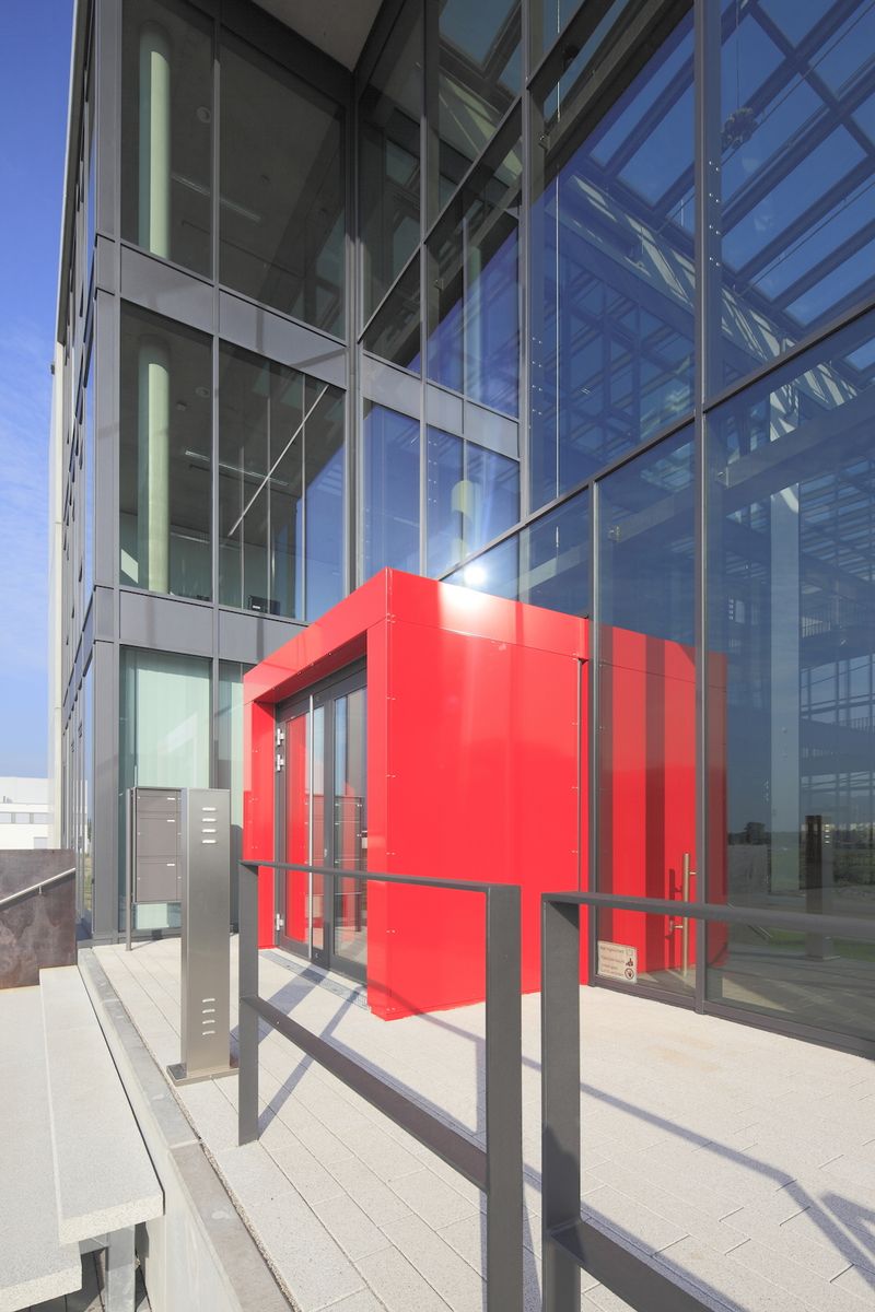 Den Auftrag für die Fassaden- und Verglasungsarbeiten mit einer Gesamtfläche von rund 2.500m² erhielt die FREYLER Metallbau GmbH im April 2013 von den Karlsruher Architekten Kühnl & Schmidt. Die Leistung umfasst dabei die kompletten Pfosten-Riegel-Fassaden und Fensterbänder inklusive Sonnenschutz in einem Umfang von circa 2.000 Quadratmetern sowie das 400m²- große Glas-Stahl-Dach zwischen den beiden Verwaltungsgebäuden.